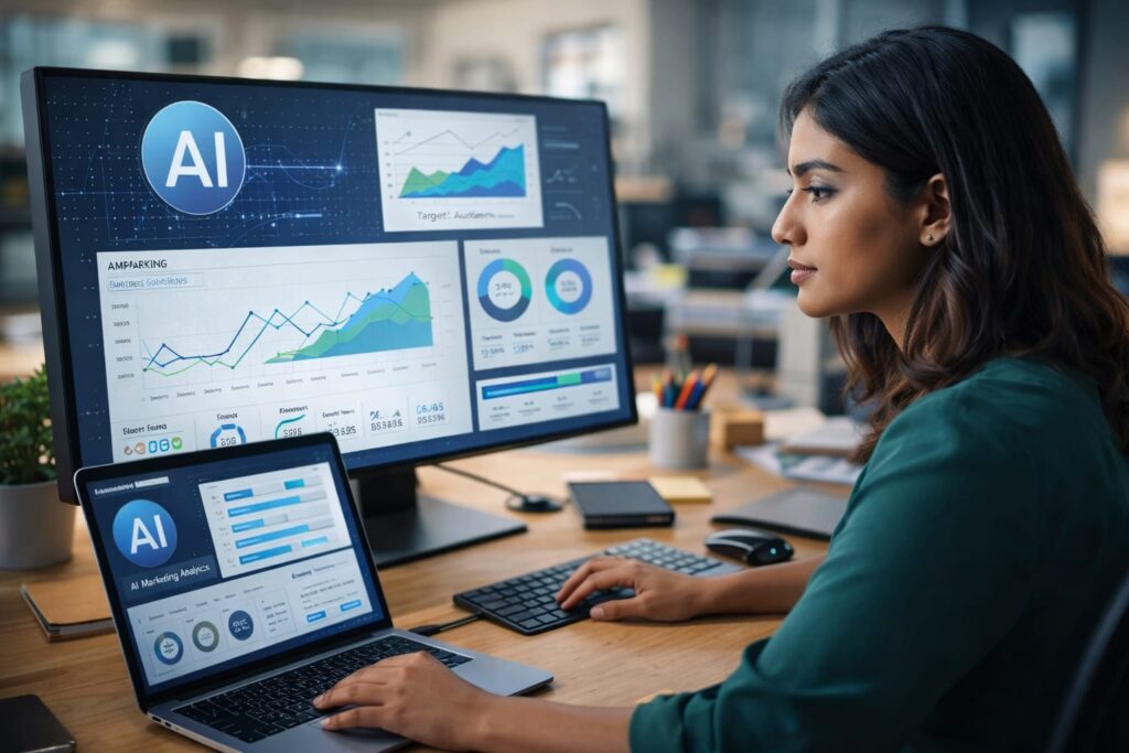 She uses AI tools to analyze audience behavior and optimize campaigns.